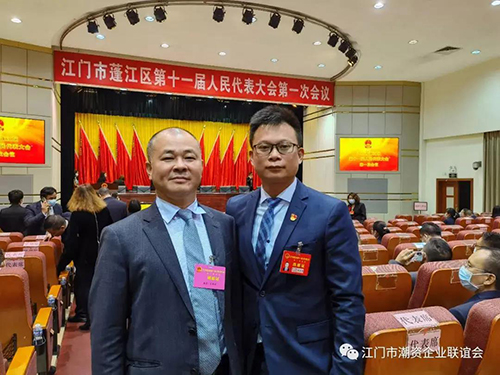 江门市潮资企业联谊会执行会长吕伟波(左)当选江门市蓬江区出席江门市第十六届人民代表大会代表。