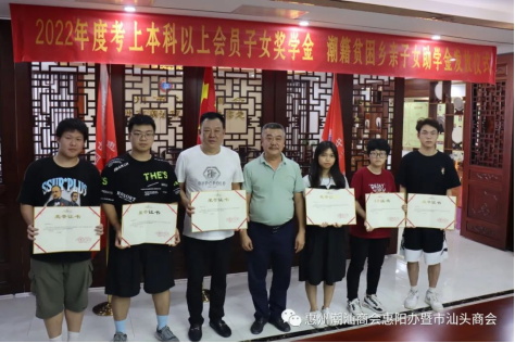 8月27日下午,惠州市潮汕商会惠阳潮商会、惠州市汕头商会迎来了一年一度的奖学助学活动,“2022年度考上本科以上会员子女奖学金、潮籍贫困乡亲子女助学金发放仪式”在惠州市潮汕商会惠阳办暨市汕头商会会议厅举行,惠州市潮汕商会惠阳办暨市汕头商会会长黄光轩,执行会长胡明,常务副会长郑昌明、姚柳波、陈智慧,名誉副会长肖友华,轮值副会长王受亮及秘书处邱旭升、吴妈文、胡镇城、杨丽娟出席,轮值会长(名誉会长、常务副会长)姚祥波派代表黄志东先生参加以上活动,郑昌明常务副会长主持仪式。