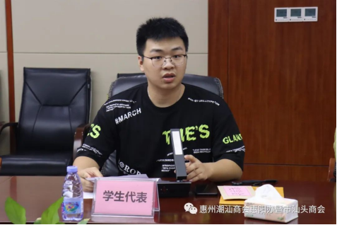 郑英煌同学代表到会的学子发言,他向惠阳潮商会和惠州市汕头商会对会员子女的关心和厚爱表示深深的感谢,商会的博爱让所有受到奖励的学子和家长感受到了乡情的温暖。