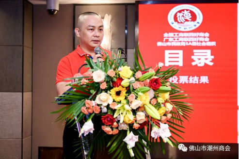 通过公正严明的计票,监票人蔡生宣读选举结果:会议选举产生本会第三届理事会、监事会成员,王承忠获得全票通过当选连任佛山市潮州商会第三届理事会会长,沈奕荣全票通过当选第三届监事会监事长。