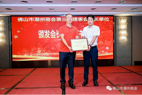 佛山市委统战部副部长、工商联党组书记李德先生为佛山市潮州商会第三届会长单位颁发证书