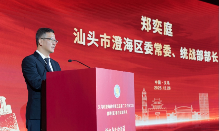 龚春强表示,要守好“乡情根脉”,打造同心家园,传承澄海人重情重义的优良传统,深化海内外澄海乡亲的情感联结,让每一位在义澄海人都能感受到“家”的温暖与支撑;要架牢“商贸金桥”,赋能高质发展,充分发挥桥梁纽带作用,上通下达精准对接政府资源,及时解读惠企政策,促进会员企业资源共享、优势互补,让“澄海制造”通过“义乌通道”走向更广阔的全球市场;要树好“澄商标杆”,彰显责任担当,以澄海企业家诚信经营、敢拼会赢的优良传统为根基,引导会员主动融入义乌发展,让澄商形象成为义乌商帮中一道亮丽的风景线。