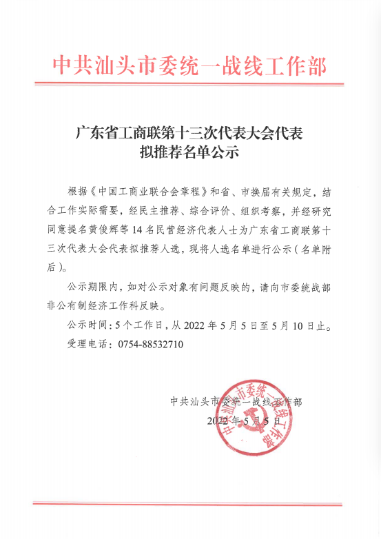 汕头市工商联(总商会)第十六届领导班子增补人选...