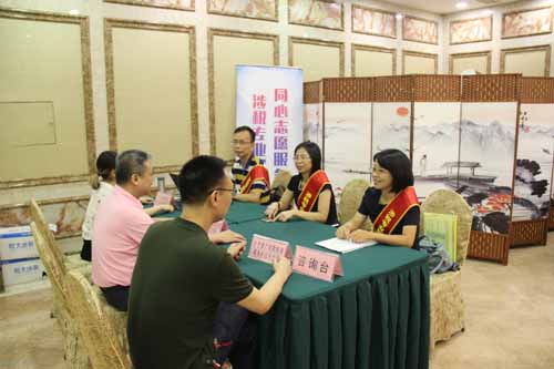 涉税专业服务同心志愿团成员广东中税佳税务师事务所、汕头市扬正税务师事务所、尤尼泰广东税务师事务所汕头分所在会场设置咨询台,现场为民营企业提供咨询,为企业解决纳税过程中遇到的各种问题。