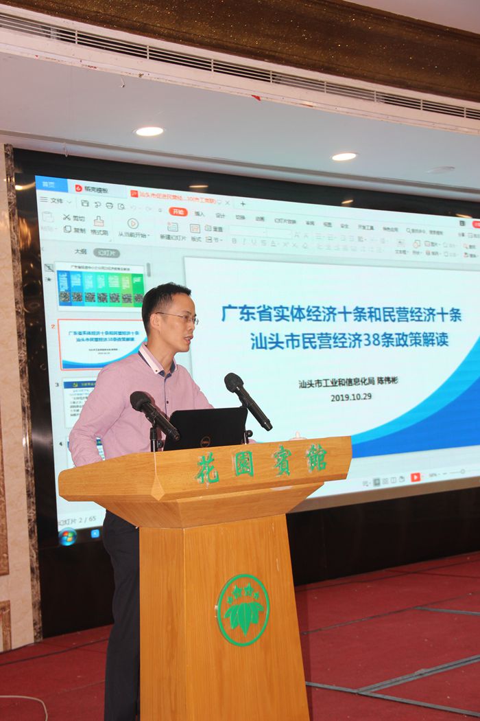 活动还邀请了市中级人民法院民四庭庭长姚焕丹围绕“诚信守法经营,防范经营法律风险”主题作法律宣讲;市工业和信息化局民营经济科副科长陈伟彬为与会人员解读广东省实体经济10条、民营经济10条和汕头市民营经济政策38条。活动还向与会人员发放了《广东省“民营经济十条”解读》、《“不忘初心、牢记使命”主题教育党员干部应知应会手册》以及《汕头市促进工业企业上规模若干政策》等读本。