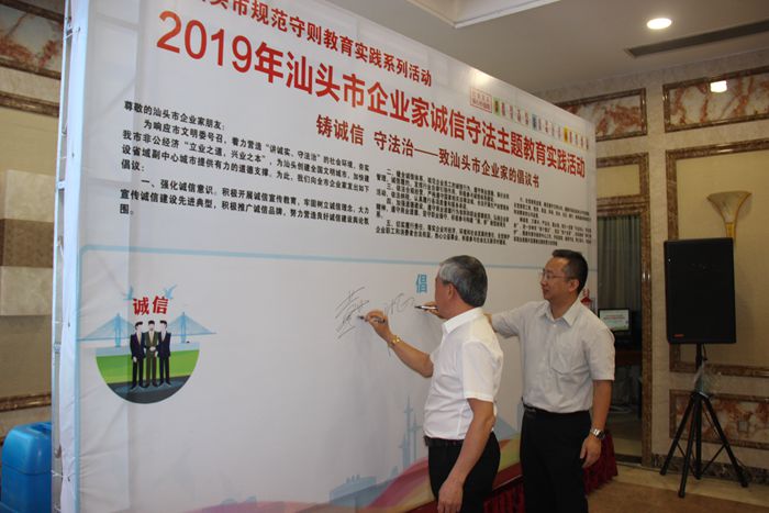 活动还举行了2019年汕头市企业家诚信守法主题教育实践倡议签名活动。