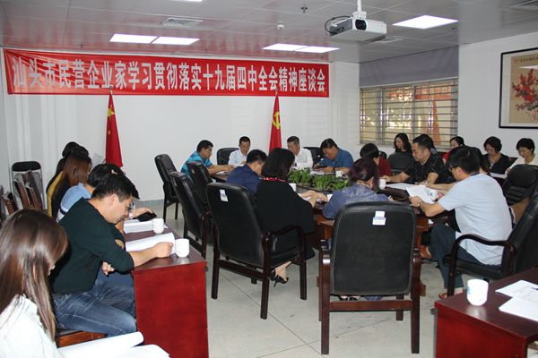 为进一步推动党的十九届四中全会精神贯彻落实到非公经济领域,11月8日,汕头市工商联组织召开汕头市民营企业家学习贯彻落实十九届四中全会精神座谈会,我会各团体会员会长、秘书长和民营企业家代表近40人参加会议。