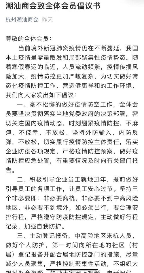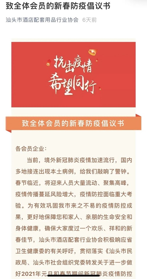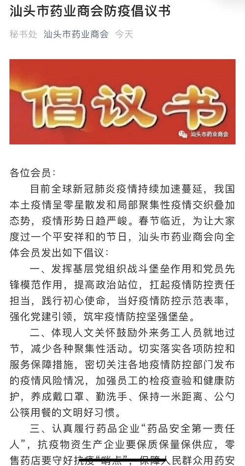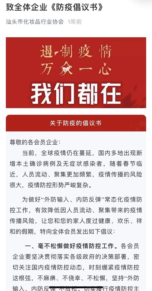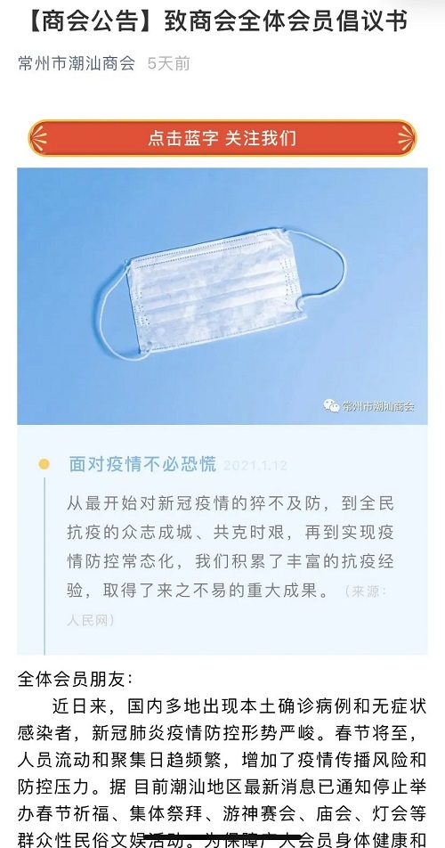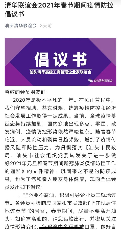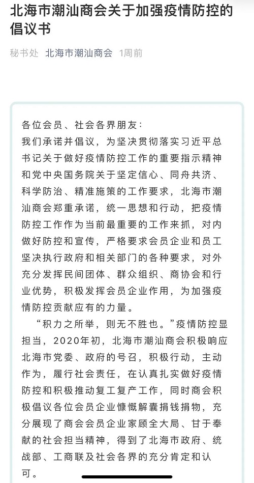 汕头市工商联系统行业商协会、各地潮汕商会发出防疫倡议书
