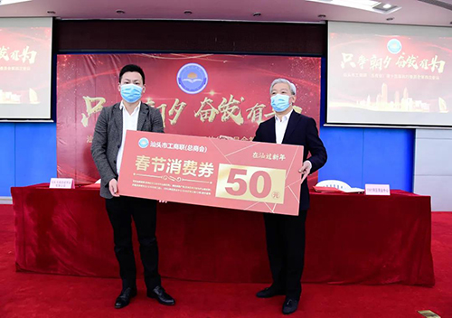 会议举行了汕头市工商联(总商会)支持外地务工人员在汕过年消费券发放活动签约仪式。市总商会响应中共中央办公厅、国务院办公厅印发《关于做好人民群众就地过年服务保障工作的通知》精神和市政府“留汕过年,八送关爱” 行动,拨出50万会费向会员单位中的外地留汕过年员工发放消费券,鼓励和支持务工人员留汕过年。