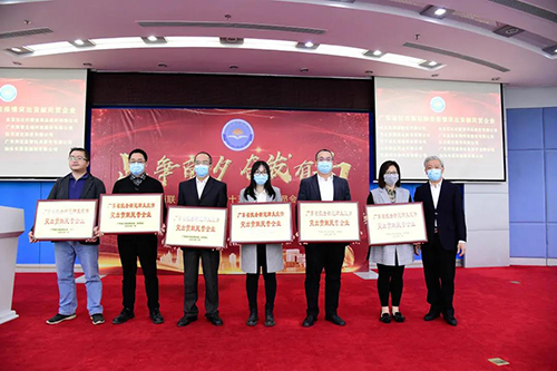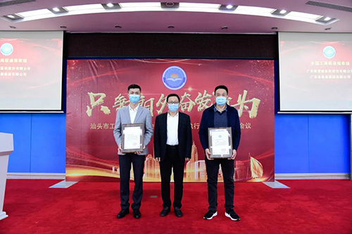 会议为获得全国、省、市表彰的抗疫先进单位颁发牌匾。广东泰恩康医药股份有限公司、广东省联泰集团有限公司获全国工商联通报表扬,获“抗击新冠肺炎疫情先进民营企业”荣誉称号;汕头东风印刷股份有限公司等12家会员企业获评“广东省抗击新冠肺炎疫情突出贡献民营企业”;广东正超电气有限公司等4家会员企业获评“广东省抗击新冠肺炎疫情组织工作优秀民营企业”;汕头市潮南区内衣家居服行业协会获评“广东省抗击新冠肺炎疫情突出贡献协会”;汕头市药业商会、汕头市湖北商会获评“广东省抗击新冠疫情组织工作优秀商会”;汕头市澄海区玩具协会、汕头市职业经理人协会获评“广东省抗击新冠疫情组织工作优秀协会”;广东英联包装股份有限公司等7家会员企业获评“汕头市抗击新冠肺炎疫情爱心企业”。