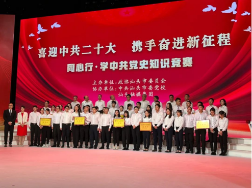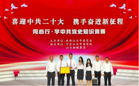 6月16日下午,由政协汕头市委员会主办,中共汕头市委党校、汕头融媒集团协办的“喜迎中共二十大、携手奋进新征程——同心行”学中共党史知识竞赛在汕头电视台一楼演播大厅举行。共有十支代表队参加知识竞赛,汕头市工商联荣获竞赛二等奖。