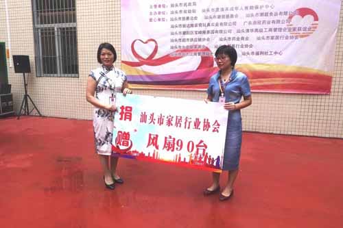 6月19日,汕头市救助站举行以“同献爱心、全力救助”汕头市社会各界关爱流浪乞讨人员为主题的“6•19”开放日活动,汕头市家居行业协会在了解流浪乞讨人员的救助工作情况后,积极参与到爱心捐赠工作中,向汕头市救助站共捐赠电风扇(壁扇)90台,用于改善滞留在站的受助人员的生活条件。我会作为爱心单位应邀到场参加物资捐赠仪式,并接受爱心牌匾。