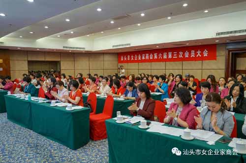 6月28日,“女商情 中国梦”汕头市女企业家商会第六届第三次会员大会在金海湾大酒店召开。市政协副主席蔡佩侬,市人大财经委副主任委员、常委会财经工委副主任孔德镐,市民政局局长陈镇坤,市工商联(总商会)主席、广东华茂实业有限公司董事长黄茂强,市工商联(总商会)副主席郑晶,汕头市工商联(总商会)副主席黄武雄等各级领导嘉宾、各地企业家、各友好商协会会长和商会会员出席大会。