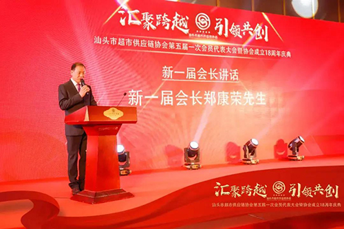 新任会长郑康荣在会上讲话,他表示,汕头市超市供应链协会将继续深入贯彻落实习近平新时代中国特色社会主义思想,围绕国家现代供应链发展战略,主动作为,开拓进取,积极发挥行业协会枢纽平台、引领共创的作用。