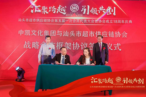 汕头市超市供应链协会还与广东中凯文化集团签署战略合作框架协议,接下来双方将在供应链对接合作、抖音电商服务等领域建立战略合作关系,共同助力协会及属下会员单位不断做大做强。