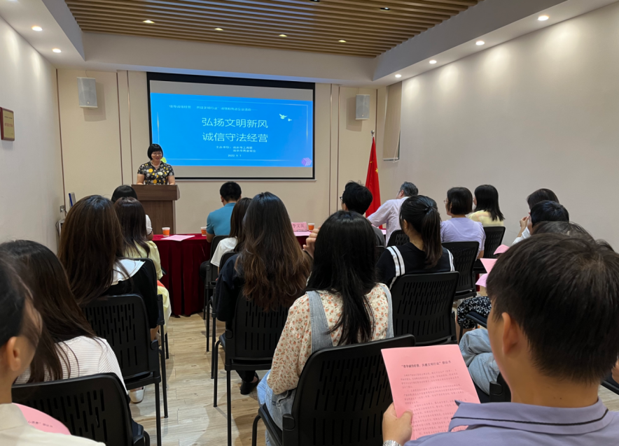 9月1日,市工商联联合汕头市药业商会在片仔癀汕头体验馆会议室开展“倡导诚信经营,共建文明行业”诚信教育进企业活动。市工商联相关人员、药业商会部分会员企业代表约20多人参加了本次活动。活动由药业商会副会长兼秘书长李文英主持。