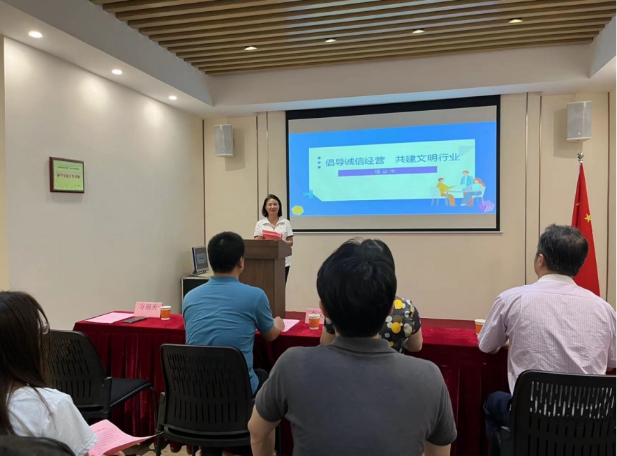 药业商会副会长方丽英作为代表宣读《“倡导诚信经营,共建文明行业”倡议书》,向全体会员发出强化诚信意识、依法合规生产、守法诚信经营、坚守道德规范、切实履行责任、自觉接受监督等倡议,引导会员加强企业诚信文化建设,宣传企业诚信品牌,塑造行业诚信形象,号召全体药业人重合同守信用,弘扬文明新风,诚信守法经营,自律合规发展,树立良好的企业形象和行业信誉。