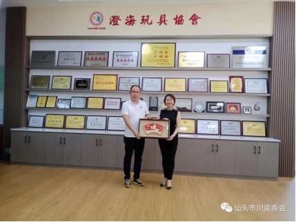 澄海玩具协会常务副会长陈烽代表协会赠予川渝商会牌匾