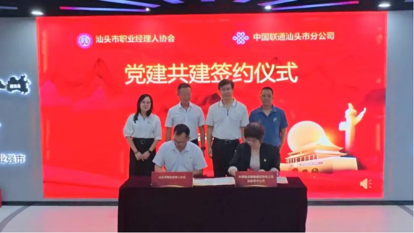 为推动基层党建提质增效,9月13日下午,汕头市职业经理人协会联合党支部与汕头联通企业战略党支部举行党建共建签约仪式。