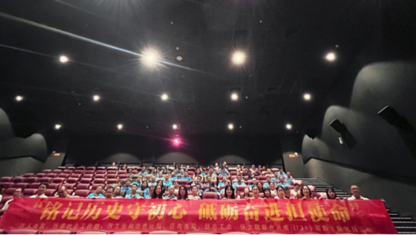 为纪念中国人民抗日战争暨世界反法西斯战争胜利80周年,进一步深化爱国主义教育与党史学习教育,引导广大党员干部职工坚定理想信念、厚植家国情怀,9月28日下午,濠江区工商联联合区委社工部、区工信局、区商务局、区总工会、区文联等多部门开展“铭记历史守初心・砥砺奋进担使命”《731》观影主题党日活动。通过集中观看历史题材电影《731》,借观影回溯历史,汲取奋进力量。各部门及相关企业代表共一百来人参加观影活动。