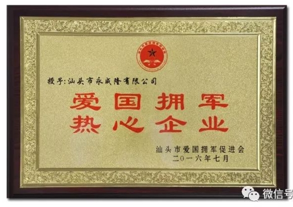 广东永成隆有限公司作为广东省爱国拥军促进会副会长单位、广东省爱国拥军优秀企业、汕头市爱国拥军促进会名誉会长单位、爱国拥军热心企业,方少平总经理更是省爱国拥军模范、汕头市关爱退役军人促进会发发起人/副会长。广东永成隆有限公司一直关心部队事业,力所能及的坚持做好“双拥”工作,连续多年免费为部队子女提供公司所生产的校服等,用实际行动为拥军活动贡献一份力量。
