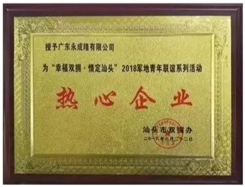 广东永成隆有限公司再次荣获2022年汕头“爱国拥军企业”荣誉称号