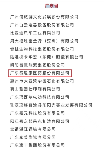 近日,人力资源和社会保障部、中华全国总工会、中国企业联合会/中国企业家协会、中华全国工商业联合会联合印发关于命名全国和谐劳动关系创建示范企业与工业园区的决定,评选出全国350家和谐劳动关系创建成效显著、职工满意度高、示范带动作用强的先进企业典型。市工商联副主席单位——广东泰恩康医药股份有限公司荣登示范企业榜单,成为广东省入选的17家企业之一,这是我市企业首次获此殊荣。