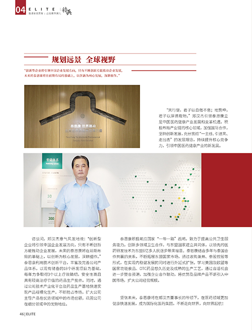匠心筑梦 铸就精彩人生——访广东泰恩康医药股份有限公司董事长郑汉杰