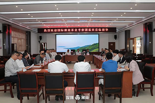 考察团在凤凰镇政府举行交流座谈会,会上,凤凰镇委副书记谢勉锐介绍凤凰镇基本情况,广东省高级评茶师学会理事陈少平先生做凤凰单丛茶品鉴介绍。潮州市工商联主席詹建怀主持会议。