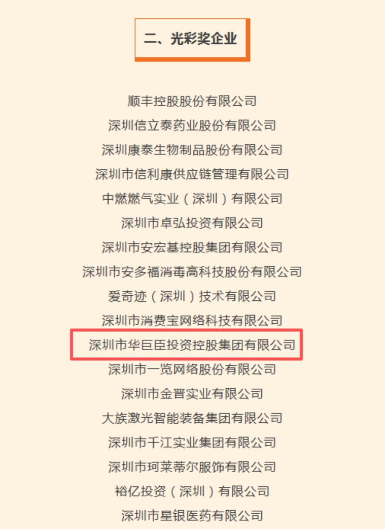 华巨臣集团荣获深圳市“光彩事业贡献奖”