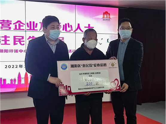 “汕头惠民保”是汕头市民专属的普惠型商业医疗补充保险,不限年龄、不限健康状况,与基本医疗保险形成互补,是创新发展中的民生保障工程。此次捐赠活动,在潮阳区工商联(总商会)的支持动员下,热心企业和爱心人士积极响应,纷纷慷慨解囊,伸出援助之手。通过统一缴费的方式为潮阳呼援通长者购买“惠民保”,让呼援中心长者在基本医保的基础上,享受到“汕头惠民保”的保障,少一份负担,多一份安心。