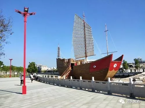 澄海樟林古港是“红头船精神”的发源地,承载着无数海内外潮人的乡愁。位于古港河出海口处的高仿真景观红头船已经成为樟林古港的网红打卡地。